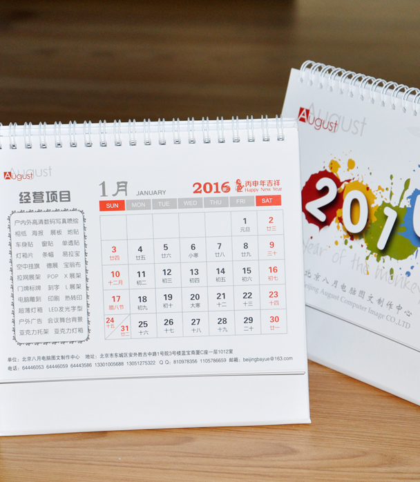 北京八月電腦圖文2016臺(tái)歷印刷